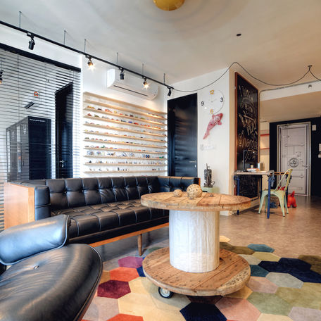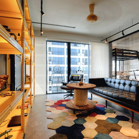 Experimentation and exploration are key elements of the design language of this SOFO (small office, flexible office). Conceived as a personal haven where the owner is able to work outside of a conventional office environment, this unit strikes the perfect balance between work, play and rest with a singular cohesive aesthetic that combines simplicity with quirky accents.